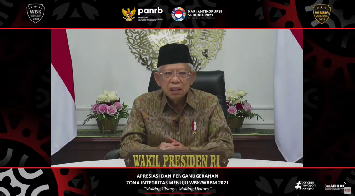 Hadir secara virtual pada kegiatan ini Wakil Presiden (Wapres) Republik Indonesia, Ma''ruf Amin. Dalam sambutannya Ma''ruf Amin mengingatkan bahwa komitmen pemberantasan korupsi tidak boleh berhenti hanya pada hal-hal yang bersifat seremonial ataupun administratif semata.