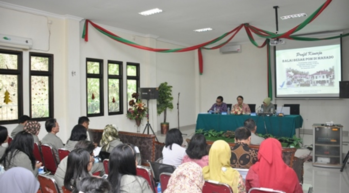 Manado - Kepala Badan POM, Roy Sparringa dan Deputi I Bidang Pengawasan Produk Terapetik dan NAPZA, T. Bahdar Johan, beserta rombongan meluncur ke Sulawesi Utara, Manado untuk memastikan kegiatan pengawasan Obat dan Makanan berjalan optimal, Senin, 28 Desember 2015. Kepala Balai Besar POM (BBPOM) di Manado, Susan Gracia beserta seluruh staf BBPOM di Manado memanfaatkan kehadiran Pimpinan Badan POM tersebut untuk menyampaikan kendala-kendala yang dihadapi dalam melaksanakan pengawasan Obat dan Makanan di daerah Sulawesi Utara, agar kinerja BBPOM di Manado dapat terus meningkat.