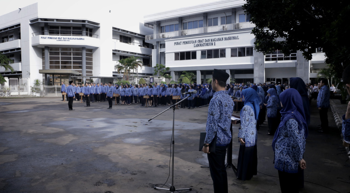 Jakarta - Pelaksanaan upacara apel pagi di lapangan BPOM Senin (19/02), diwarnai dengan semangat baru dalam melayani dan melindungi masyarakat. “Perubahan besar yang terjadi baru-baru ini, yaitu pelantikan Eselon II, III, dan IV merupakan suntikan semangat baru di BPOM”, demikian sambutan Kepala BPOM yang dibacakan oleh Sekretaris Utama sebagai Pimpinan Apel.