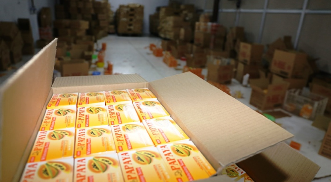 Selain itu juga ditemukan bahan baku, kemasan karton, mesin mixer, mesin potong, mesin kemas primer, dan lainnya dengan nilai keekonomian diperkirakan mencapai 2 miliar rupiah. Temuan ini merupakan hasil kerja sama Balai POM di Serang, Kepolisian Daerah Banten, Kepolisian Resort Kota Tangerang (Tigaraksa), dan Dinas Kesehatan Kabupaten Tangerang.