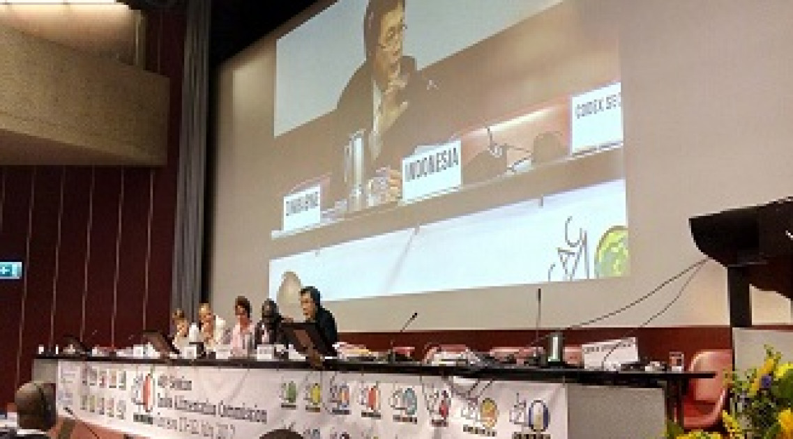 Badan POM diundang secara khusus untuk mempresentasikan pengalamannya terkait “National Food Control System Assessment Tool”. Badan POM telah diakui sebagai Instansi yang mampu menerapkan Standard FAO dan WHO dalam melakukan pengawasan terhadap produk pangan yang beredar. Dalam presentasinya Direktur Standardisasi Produk Pangan, Drs. Tepy Usia, Apt., M.Phil, Ph.D menyampaikan sistem pengawasan produk pangan di Indonesia telah dilakukan dengan melibatkan kerjasama lintas sektor secara sinergis sehingga menghasilkan pengawasan pangan yang terpadu serta optimal. Adanya pengawasan yang dilakukan secara komprehensif dengan melibatkan lintas sektor menggunakan elemen-elemen sebagaimana Standard FAO dan WHO, maka pengawasan pangan dapat berjalan lebih efektif dan efisien. Kehadiran Badan POM dalam berbagi pengalaman terkait pengawasan pangan dalam sidang Codex mendapat apresiasi dari FAO, WHO dan negara anggota Codex.