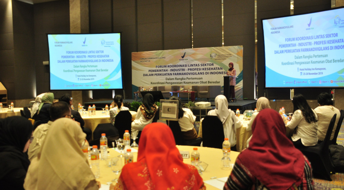 Jakarta – Badan POM menyelenggarakan pertemuan lintas sektor dalam rangka sinergi penguatan pelaksanaan aspek keamanan obat di Kemayoran Jakarta, Senin (25/11). Forum ini dihadiri oleh para profesional kesehatan, pelaku bisnis, dan pemangku kepentingan lainnya. Pembahasan seputar farmakovigilans menjadi topik utama forum ini. Tujuannya untuk memperoleh persamaan persepsi, identifikasi permasalahan dan komitmen dalam pelaksanaan farmakovigilans oleh semua pihak terkait, termasuk di dalamnya Kementerian Kesehatan, Asosiasi Profesi, Industri Farmasi, Pelayanan Kesehatan, hingga Tenaga Profesional Kesehatan.
