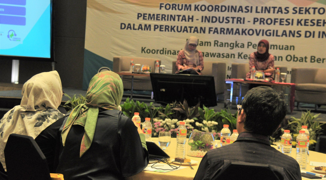 Kegiatan forum koordinasi lintas sektor dibuka oleh Tri Asti Isnariani, Direktur Pengawasan Keamanan, Mutu, dan Ekspor Impor Obat, Narkotika, Psikotropika, Prekursor, dan Zat Adiktif. Ia menyampaikan bahwa pengawalan aspek keamanan obat menjadi tanggung jawab pemerintah, industri farmasi, tenaga kesehatan, dan juga masyarakat sebagai pengguna obat. “Farmakovigilans merupakan hal yang harus kita pahami dengan benar karena merupakan tanggung jawab semua pihak sesuai bidang tugas masing-masing untuk memastikan keamanan penggunaan obat dan jaminan keselamatan pasien,” pesan Tri Asti saat membacakan sambutan Deputi Bidang Pengawasan Keamanan, Mutu, dan Ekspor Impor Obat, Narkotika, Psikotropika, Prekursor, dan Zat Adiktif.