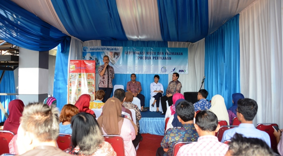 Kali ini Badan POM bersama Kementerian Kelautan dan Perikanan (KKP) serta Badan Standardisasi Nasional (BSN) bersinergi melakukan pembinaan UMKM produk olahan perikanan dalam menerapkan standar yg berlaku. Tercatat ada tiga sertifikasi mutu dan keamanan produk olahan perikanan harus dipenuhi meliputi Sertifikat Kelayakan Pengolahan (SKP) dari KKP, Sertifikat Tanda Standar Nasional Indonesia (SNI) dari Lembaga Sertifikasi Produk (LSPro), dan Izin Edar MD dari Badan POM.