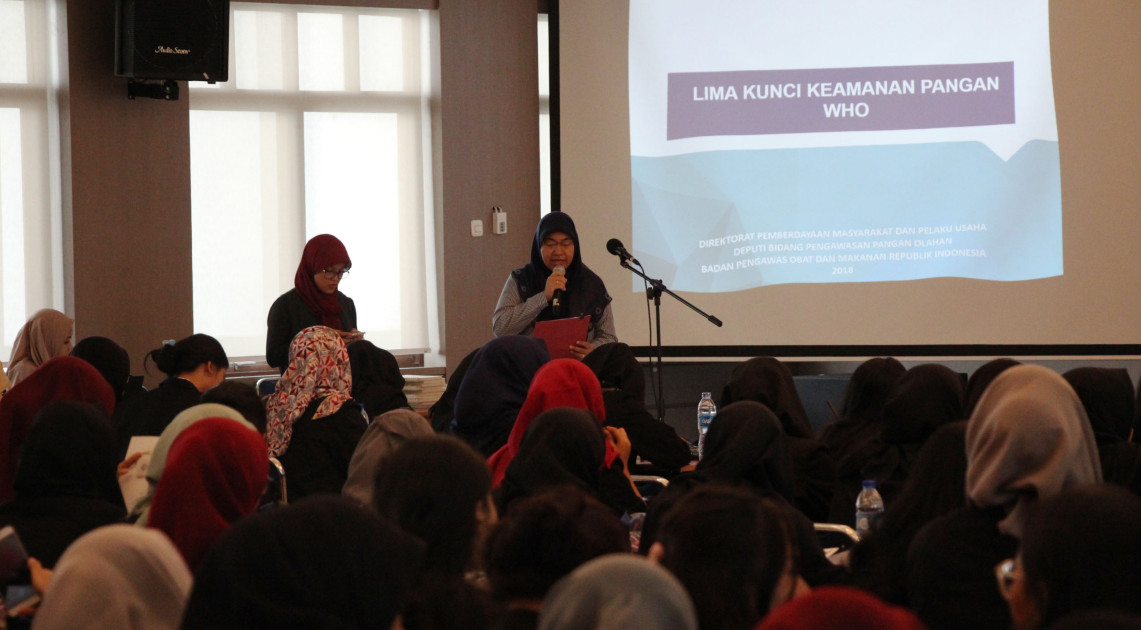 Pada hari Kamis tanggal 4 April 2018 di Aula Gedung F lantai 6, Badan POM, diselenggarakan Sosialisasi Keamanan Pangan kepada Individu yang pertama dengan mengundang 180 orang mahasiswa/mahasiswi dari program studi kehumasan (Public Relations) (D III). Materi yang disampaikan pada sosialisasi tersebut terkait 5 Kunci Keamanan Pangan dan Akses Informasi Keamanan Pangan (www.pom.go.id, http://klubpompi.pom.go.id, http://pkpdfi.pom.go.id/cluster, standarisasipangan.pom.go.id, aplikasi Ayo Cek BTP, dan aplikasi kader keamanan pangan).