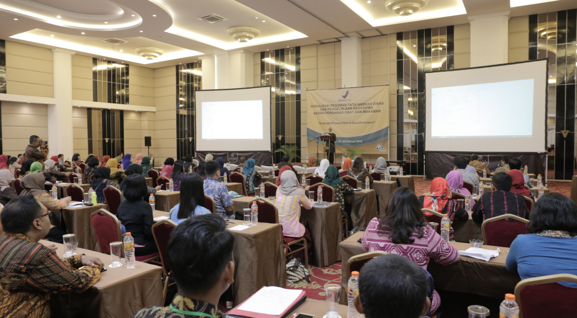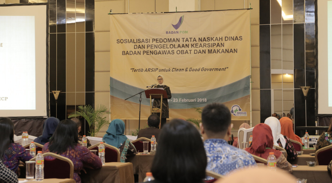 “Dalam rangka harmonisasi dengan struktur baru Badan POM RI, maka perlu menyusun/merevisi kembali instrumen kearsipan yang sudah ada, agar Pengelolaan Tata Naskah Dinas dan Kearsipan di lingkungan Badan POM RI dapat lebih ditingkatkan sesuai dengan peraturan perundangan yang berlaku. Untuk itu saya harapkan kepada ANRI kiranya dapat membantu penyusunan/revisi instrumen kearsipan tersebut sekaligus mensosialisasikan kepada peserta kali ini”, demikian disampaikan Kepala Badan POM RI, Penny K. Lukito saat memberikan sambutan sekaligus membuka acara Sosialisasi Pedoman Tata Naskah Dinas di Hotel Grand Savero Bogor, Selasa (20/02)