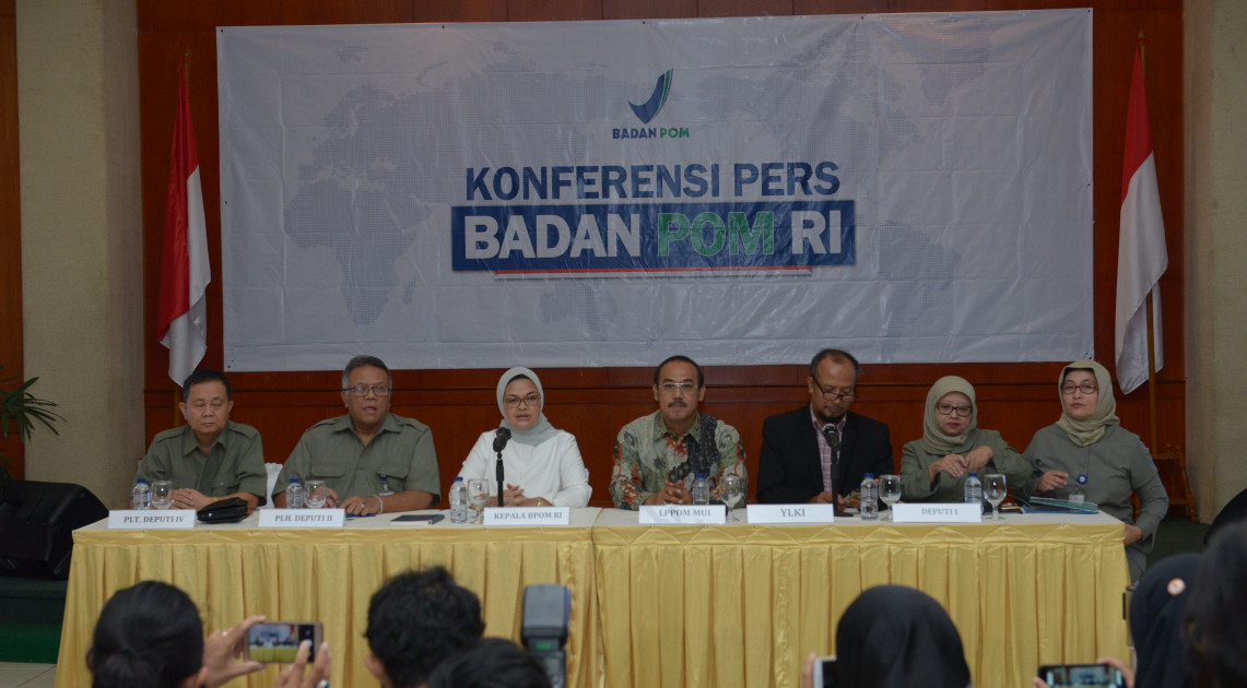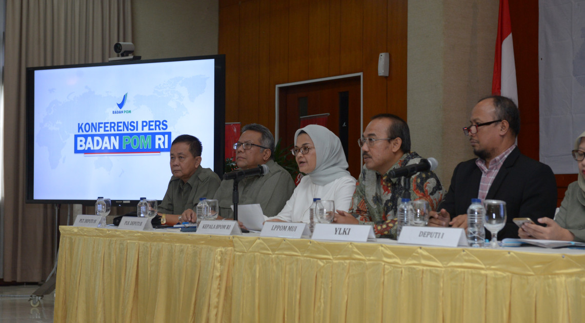 Jakarta - Senin (05/02) Kepala BPOM RI, Penny K. Lukito undang rekan-rekan media untuk hadir pada konferensi pers terkait perkembangan temuan produk Viostin DS dan Enzyplex yang mengandung DNA babi. Turut hadir sebagai narasumber konferensi pers adalah Ketua Yayasan Lembaga Konsumen Indonesia (YLKI), Tulus Abadi; Direktur Lembaga Pengkajian Pangan, Obat-Obatan dan Kosmetika Majelis Ulama Indonesia (LPPOM MUI), Lukmanul Hakim; Deputi Bidang Pengawasan Produk Terapetik dan Napza BPOM RI, Nurma Hidayati; Plh. Deputi Bidang Pengawasan Obat Tradisional, Kosmetik, dan Produk Komplemen BPOM RI, Suratmono, serta Plt. Deputi Bidang Penindakan BPOM RI, Hendri Siswadi.