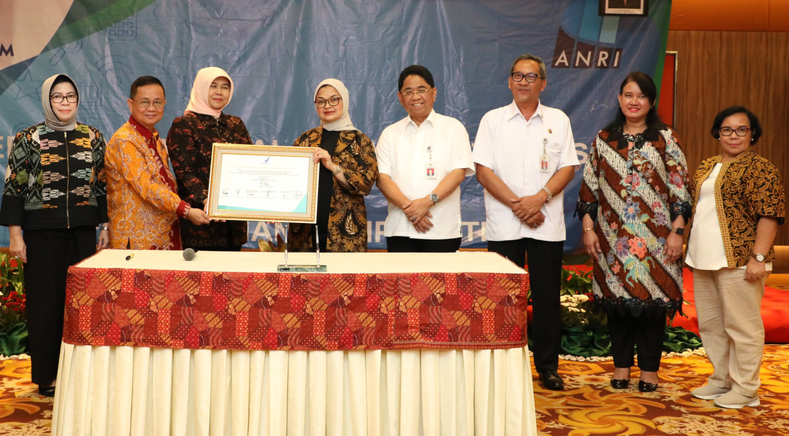 Jakarta – Selasa (25/3) Kepala Badan POM, Penny K. Lukito menyerahkan arsip statis kepada Kepala Arsip Nasional Republik Indonesia (ANRI), Mustari Irawan di Hotel Borobudur, Jakarta. Penyerahan ini disaksikan oleh jajaran pejabat eselon I dan II serta para Kepala Balai Besar/ Balai POM/ loka.