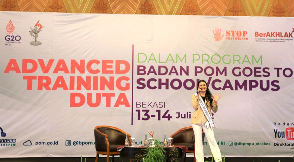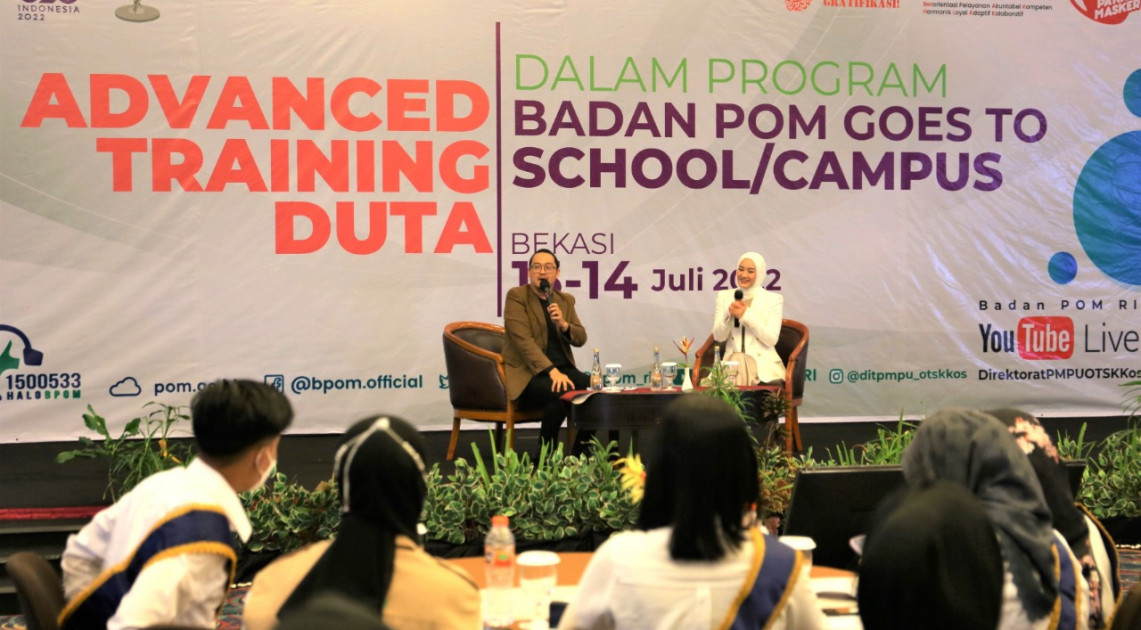Bekasi - Dalam meningkatkan kompetensi dan pengetahuan peserta kegiatan sebagai Duta, Badan POM menggelar kegiatan “Advanced Training Duta Jamu Aman dan Duta Kosmetik Aman dalam program Badan POM Goes to School & Badan POM Goes to Campus Tahun 2022” selama 2 (dua) hari pada 13-14 Juli 2022. Kegiatan ini diikuti oleh 249 Duta Badan POM terbaik yang terdiri dari 213 Duta Kosmetik Aman dan 36 Duta Jamu Aman dari seluruh Indonesia.