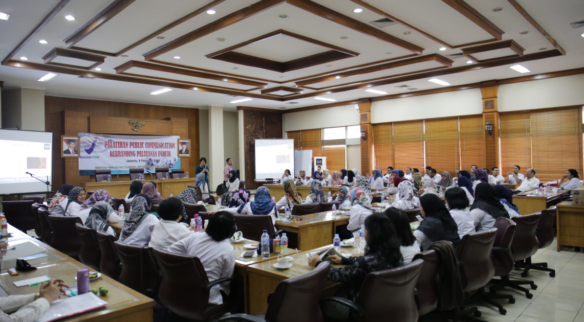 Pelatihan yang dihadiri oleh 80 pegawai Direktorat Penilaian Obat Tradisional, Suplemen Makanan dan Kosmetik ini bertujuan untuk meningkatkan kualitas komunikasi setiap petugas pelayanan publik.