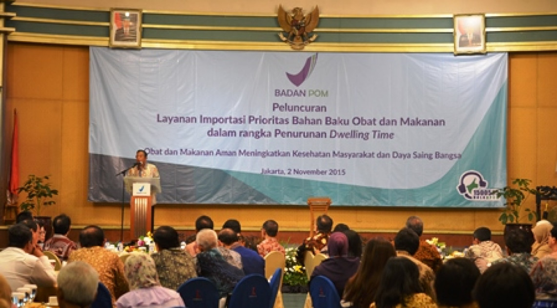 Badan POM kembali melakukan terobosan layanan publik dengan meluncurkan Layanan Importasi Prioritas Bahan Baku Obat dan Makanan sebagai upaya untuk menurunkan dweeling time. Acara yang dihadiri oleh Menteri Koordinator Bidang Perekonomian, Kepala Badan POM, Pimpinan Kementerian Kesehatan, Kementerian Koordinator Bidang Kemaritiman, Ombudsman, PPNSW, Ditjend Bea dan Cukai, perwakilan dari 13 Kementerian/Lembaga yang terintegrasi Portal INSW, sekitar 150 importir, dan sejumlah asosiasi Obat dan Makanan tersebut bertempat di Hotel Lumire Jakarta, 2 November 2015.