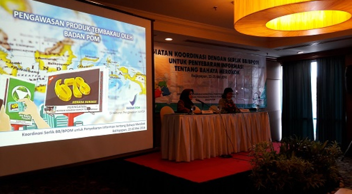 “Karena itu, pemerintah Indonesia perlu membuat upaya yang agresif untuk melindungi masyarakat dari bahaya rokok, termasuk dari intervensi industri rokok melalui iklan, promosi dan sponsor rokok”. Demikian sambutan Direktur Pengawasan Narkotika, Psikotropika dan Zat Adiktif (NAPZA) yang dibacakan oleh Kepala Sub Direktorat Pengawasan Narkotika, Berni Somalinggi, pada pembukaan Kegiatan Koordinasi dengan Serlik BB/BPOM untuk Penyebaran Informasi tentang Bahaya Merokok di Balikpapan 23 Mei 2016. “Badan POM telah diberikan amanah untuk mengawasi produk tembakau yang beredar sesuai PP No. 109 Tahun 2012. Berbagai kegiatan telah dilakukan Badan POM sebagai wujud implementasi amanah tersebut, termasuk kegiatan penyebaran Komunikasi, Edukasi, dan Informasi (KIE) terkait bahaya rokok kepada pelajar dan mahasiswa di Jakarta, Semarang, Yogyakarta, dan Surabaya”, lanjut Berni.