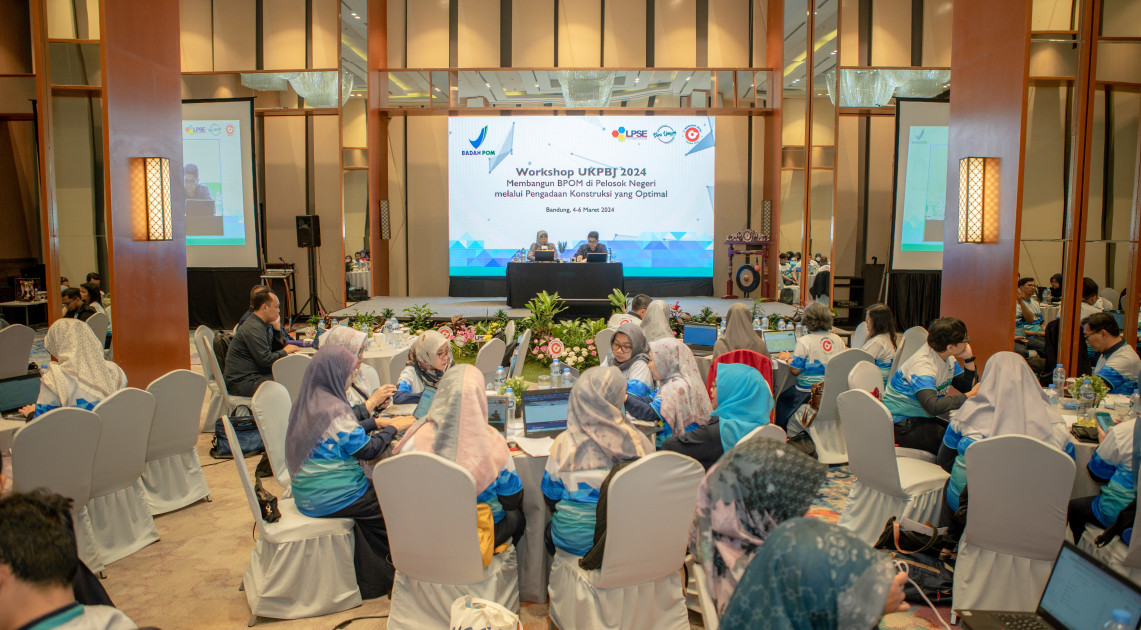 Jakarta - BPOM terus berkomitmen meningkatkan tata kelola pengadaan barang/jasa (PBJ) guna mendukung operasional pengawasan obat dan makanan di seluruh pelosok negeri. Untuk itu, BPOM menyelenggarakan workshop dengan tema "Membangun BPOM di Pelosok Negeri Melalui Pengadaan Konstruksi yang Optimal" pada tanggal 4-5 Maret 2024 di Jakarta.