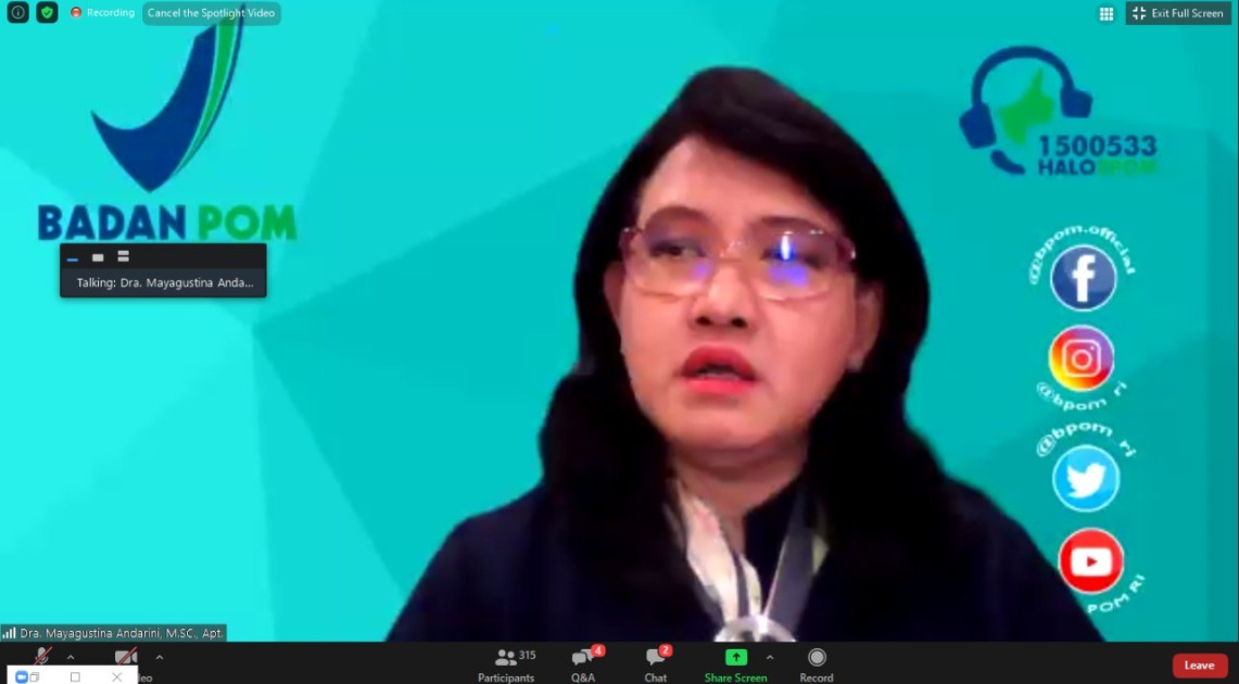 Sosialisasi dilakukan secara live di Hotel Aryaduta Jakarta dan secara online via webinar zoom. Sosialisasi diikuti oleh 400 orang peserta. Materi webinar, terdiri atas tata cara pengajuan rekomendasi sebagai pemohon notifikasi kosmetik dan tata cara pendaftaran akun pemohon notifikasi kosmetik. Materi webinar disampaikan oleh narasumber dari Badan POM.