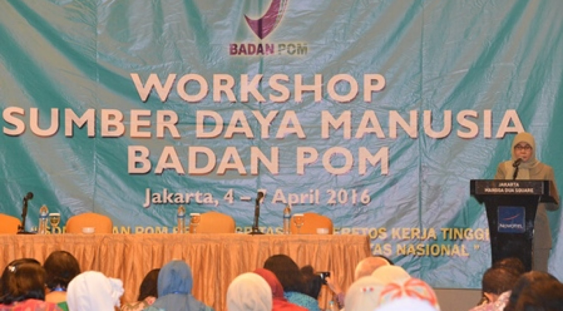 Sumber Daya Manusia (SDM) merupakan aset berharga yang akan menentukan kinerja suatu organisasi. Menyadari hal ini, Badan POM melalui Biro Umum menyelenggarakan Workshop SDM di Jakarta, 4-7 April 2016. Workshop tahun ini mengusung tema “SDM Badan POM Berintegrasi dan Beretos Kerja Tinggi Mendukung Pencapaian Program Prioritas Nasional”. Acara yang dibuka oleh Kepala Badan POM, Roy Sparringa ini dihadiri oleh Sekretaris Utama, Reri Indriani; Kepala Biro Umum, Ema Setyawati; Kepala Unit Kerja di lingkungan Badan POM, serta Balai Besar/Balai POM (BB/BPOM) di seluruh Indonesia.