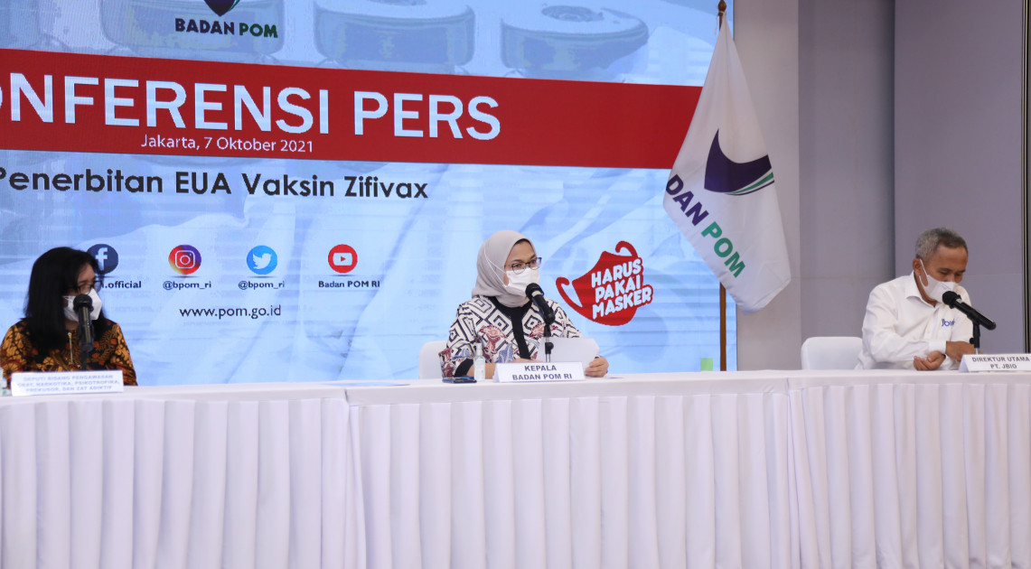 Jakarta – Satu lagi vaksin COVID-19 mendapatkan izin penggunaan darurat/Emergency Use Authorization (EUA) dari Badan POM. Vaksin kesepuluh di Indonesia tersebut adalah Zifivax produksi Anhui Zhifei Longcom Biopharmaceutical. Persetujuan pemberian EUA tersebut disampaikan Kepala Badan POM RI, Penny K. Lukito secara langsung dalam konferensi pers pada Hari Kamis (07/10).