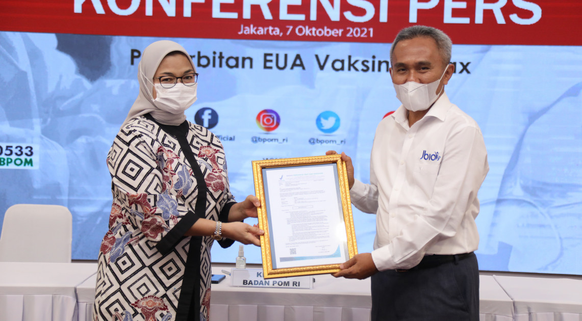 Dalam kesempatan tersebut, Kepala Badan POM secara langsung menyerahkan sertifikat EUA untuk Vaksin Zifivax kepada Direktur Utama PT JBio, Mahendra Suhardono. Ia juga menekankan beberapa aspek yang diapresiasi dari pengembangan Vaksin Zifivax tersebut.