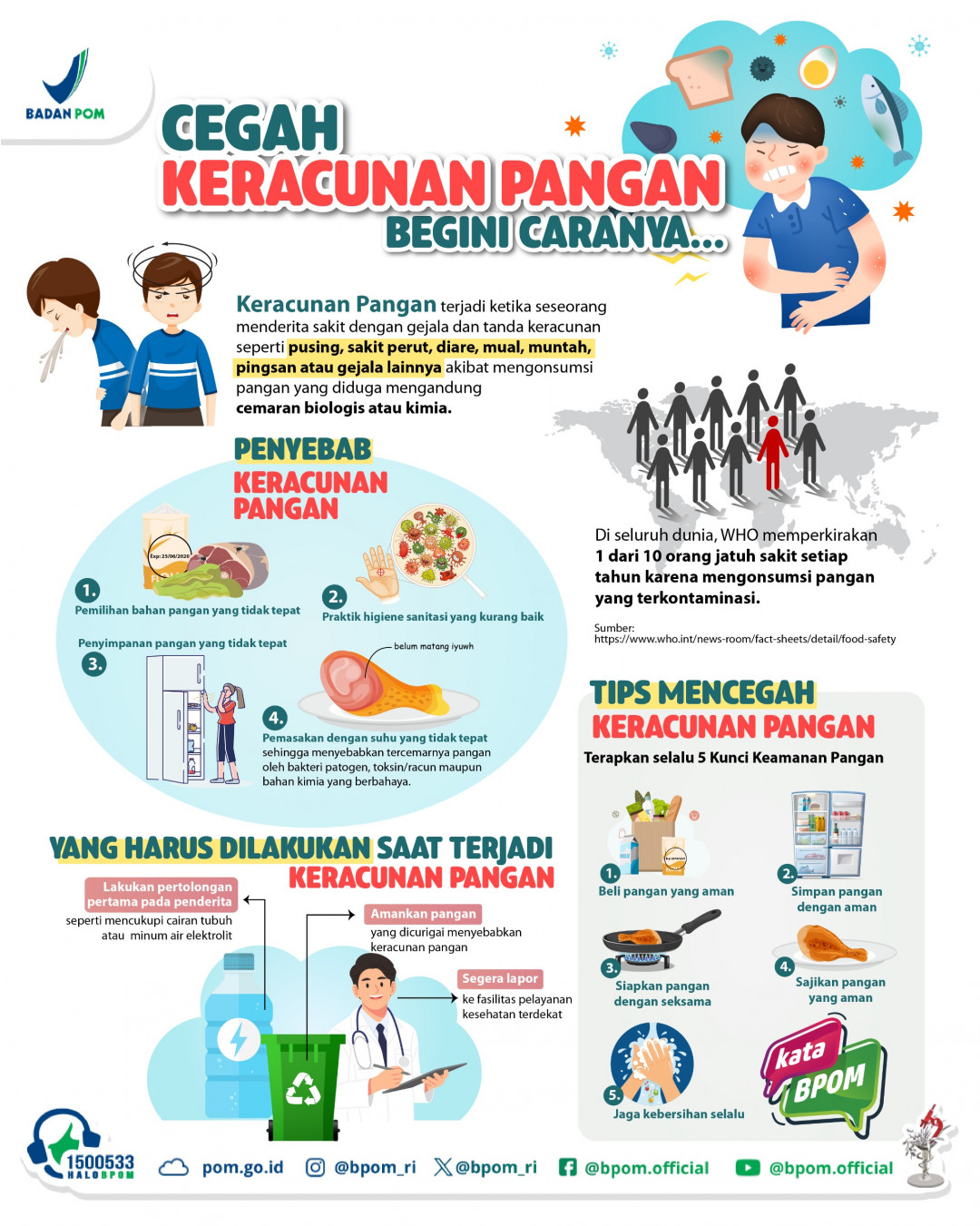 Simak infografis berikut untuk cari tahu tentang keracunan pangan, penyebabnya, dan juga tips agar terhindar dari keracunan pangan!