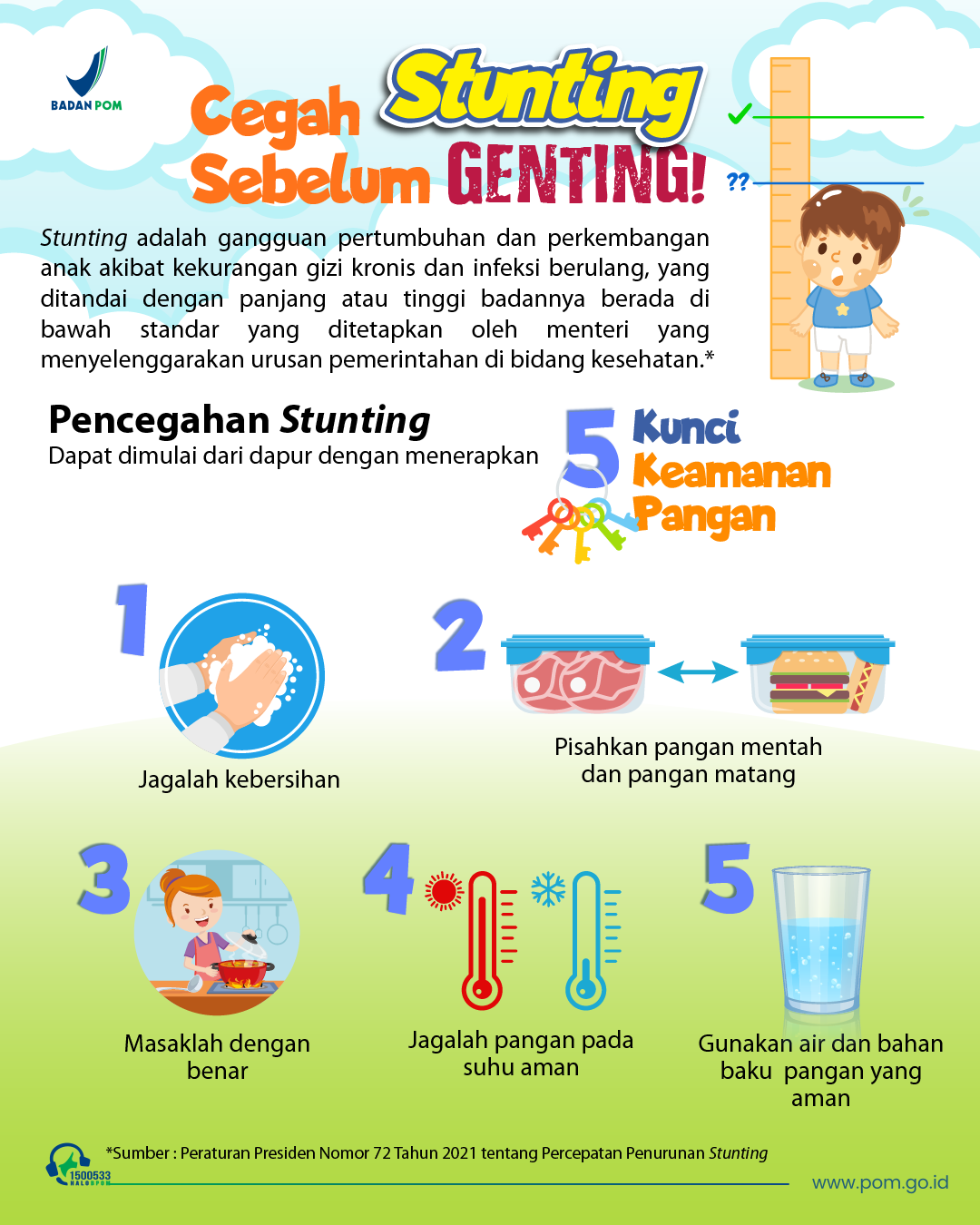 SahabatBPOM, yuk kenali stunting dan cegah dengan menerapkan 5 Kunci Keamanan Pangan dimulai dari dapur kita.