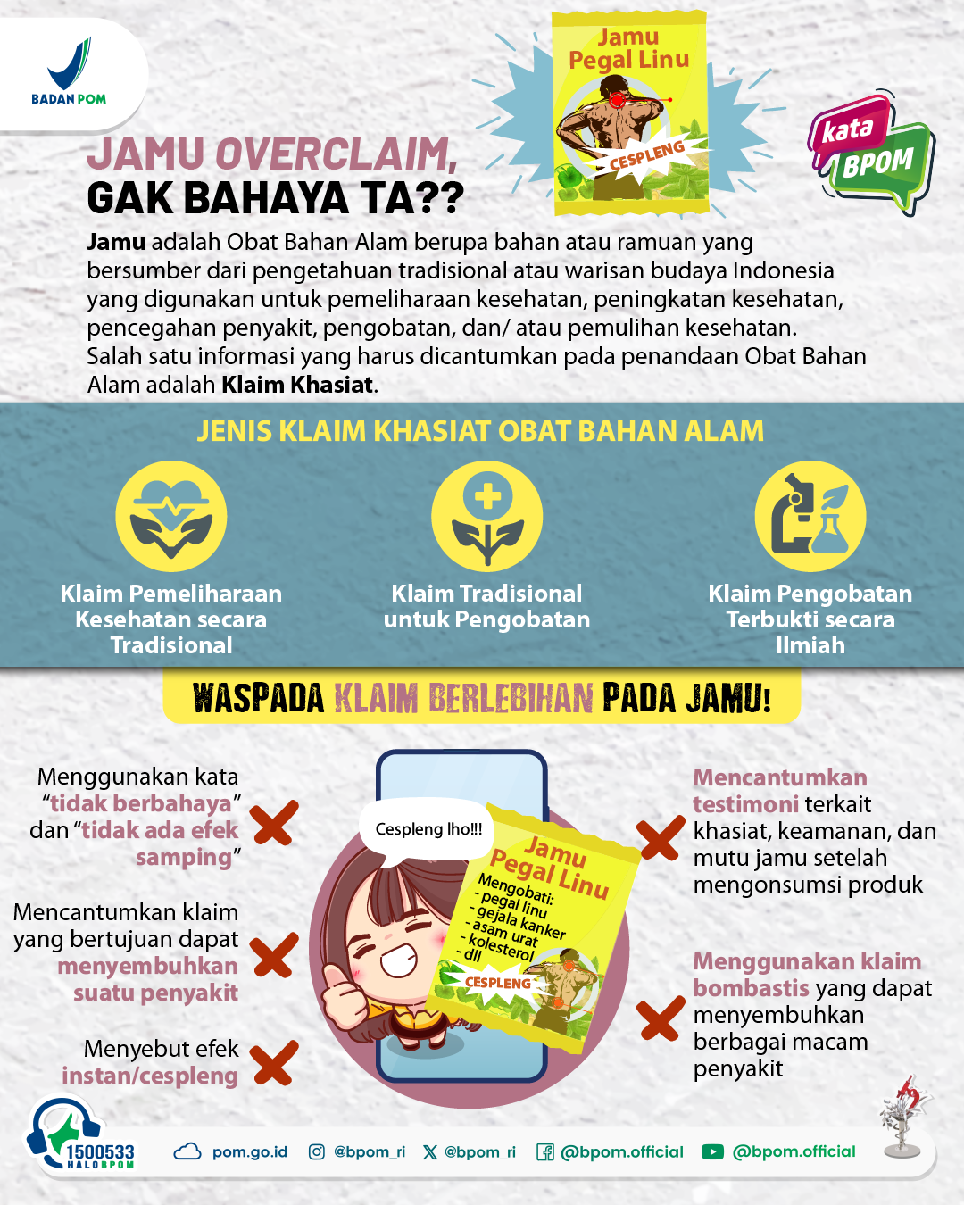 Yuk simak infografis berikut untuk mengetahui apa saja yang termasuk pada klaim produk jamu.