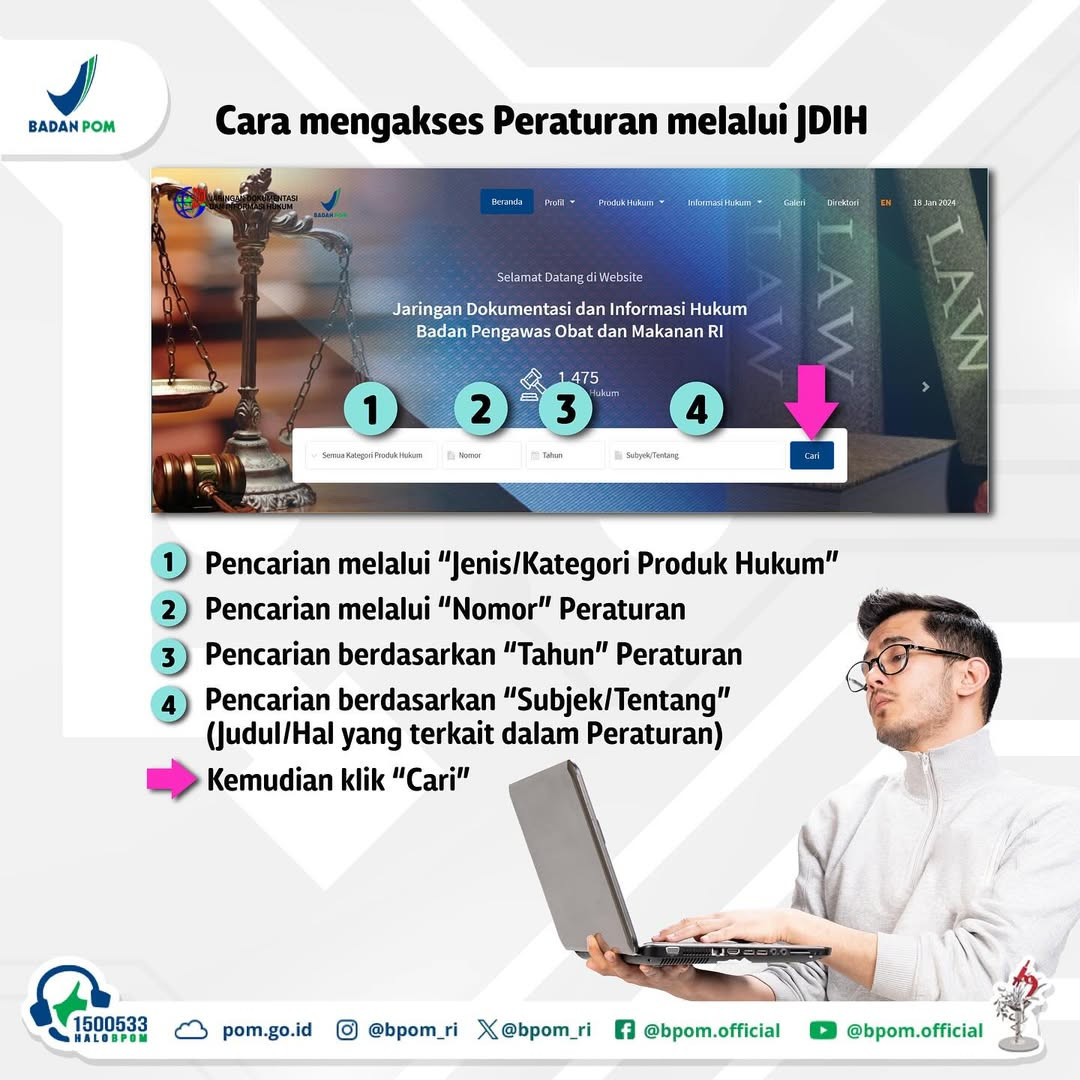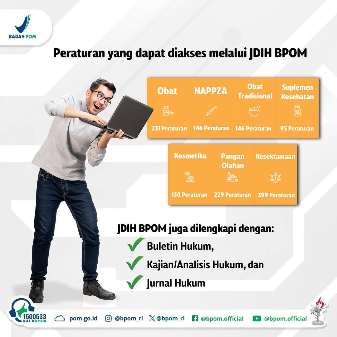 Hai #SahabatBPOM, buat kamu yang bingung cari-cari peraturan terkait BPOM, ada solusi mudah nih! Kamu bisa akses JDIH BPOM.