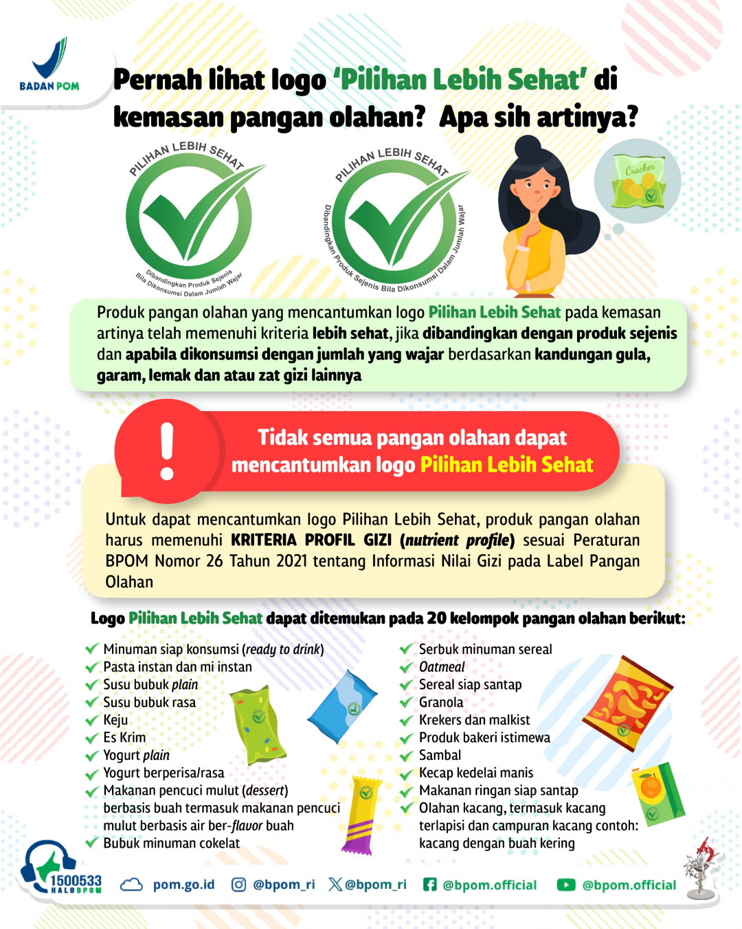 SahabatBPOM, pernah gak sih kamu lihat logo ‘Pilihan Lebih Sehat’ saat berbelanja produk pangan olahan? 🤔